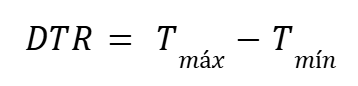 Rango diurno de temperatura (DTR, de sus siglas en inglés Diurnal Temperature Range) o amplitud térmica: Es la diferencia entre la temperatura máxima (Tmáx) y mínima (Tmín) diaria.