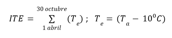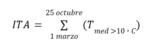 Integral Térmica Activa: Es un índice agroclimático que se calcula sumando las temperaturas medias diarias superiores a 10ºC (temperatura activa (Ta)) durante el periodo del 1 de marzo al 25 de octubre. Este índice debe ser superior a 3000ºC para el cultivo de la vid.